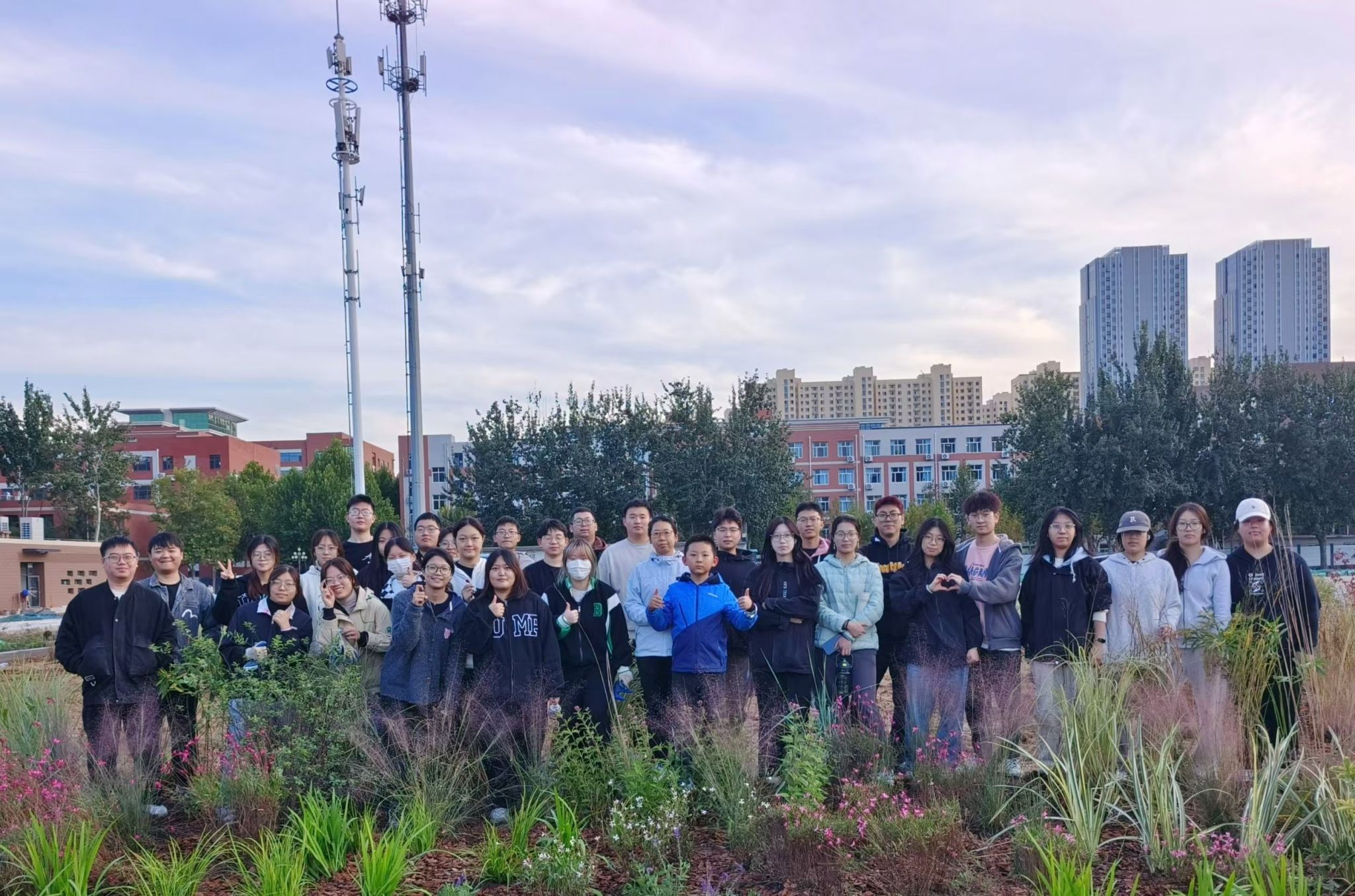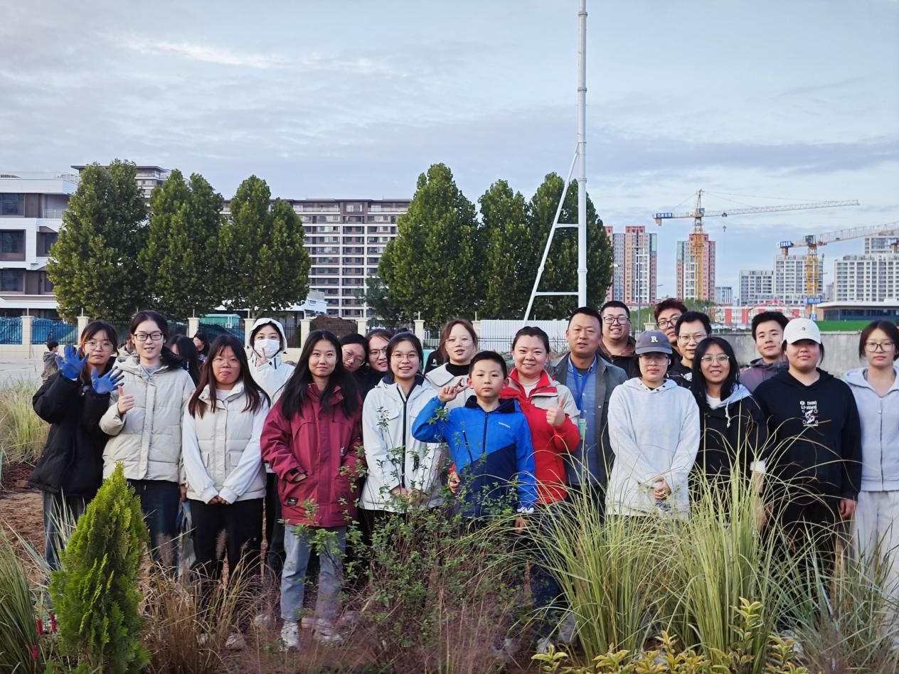 师生与花境设计与施工成果合影