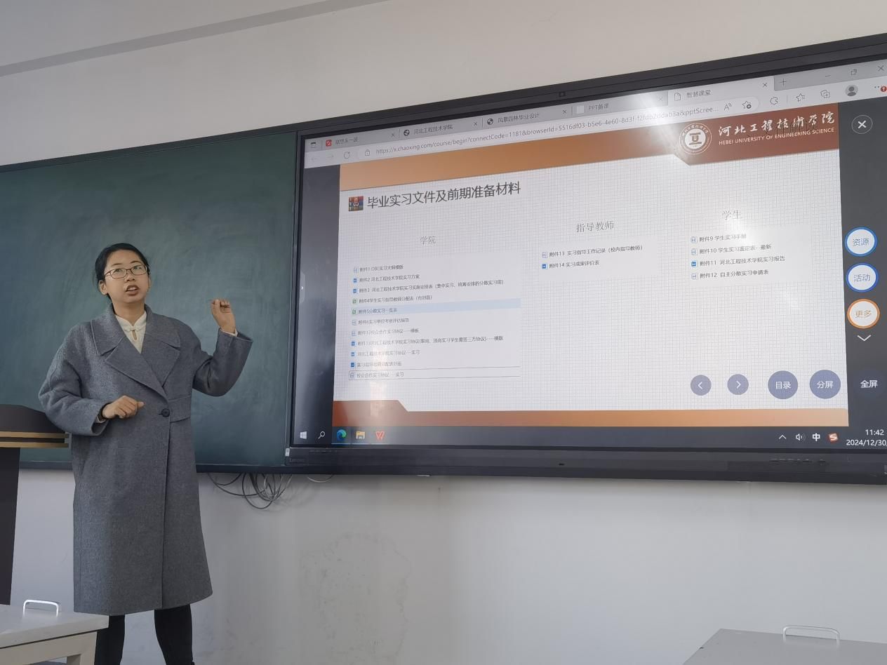 2024年12月30日中午,太阳成集团tyc234cc2025届风景园林专业毕业实习动员大会隆重召开。本次大会之目的在于为即将步入实习岗位的大四学生确立实习的目标与方向,阐释毕业实习相关的工作流程及文件要求,讲解注意事项,并向学生提供精神上的鼓励与支持。系主任、毕业实习指导教师以及全体大四学生参加了本次会议,现场气氛既热烈又庄重。